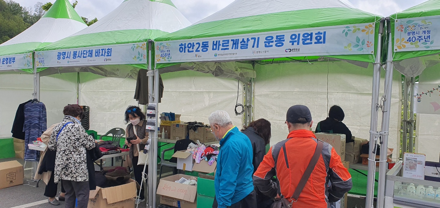 따뜻한 나눔의 손길도 이어진다. 장터 내 광명시 봉사단체협의회에서 진행하는 바자회 수입은 기부금으로 조성되며, 하안2동 바르게살기운동위원회 바자회의 판매 수입은 전액 희망나기 운동본부에 기부돼 코로나19로 어려움을 겪고 있는 이웃을 위해 뜻깊게 쓰일 예정이다.