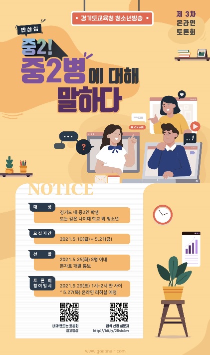 토론회에는 사회자, 토론자 등 중학교 2학년 학생 10명(학교 밖 청소년 포함)이 참여하며, 직접 선정한 주제인 중학교 2학년으로서 갖는 고민을 나누는 내용으로 진행됐다.