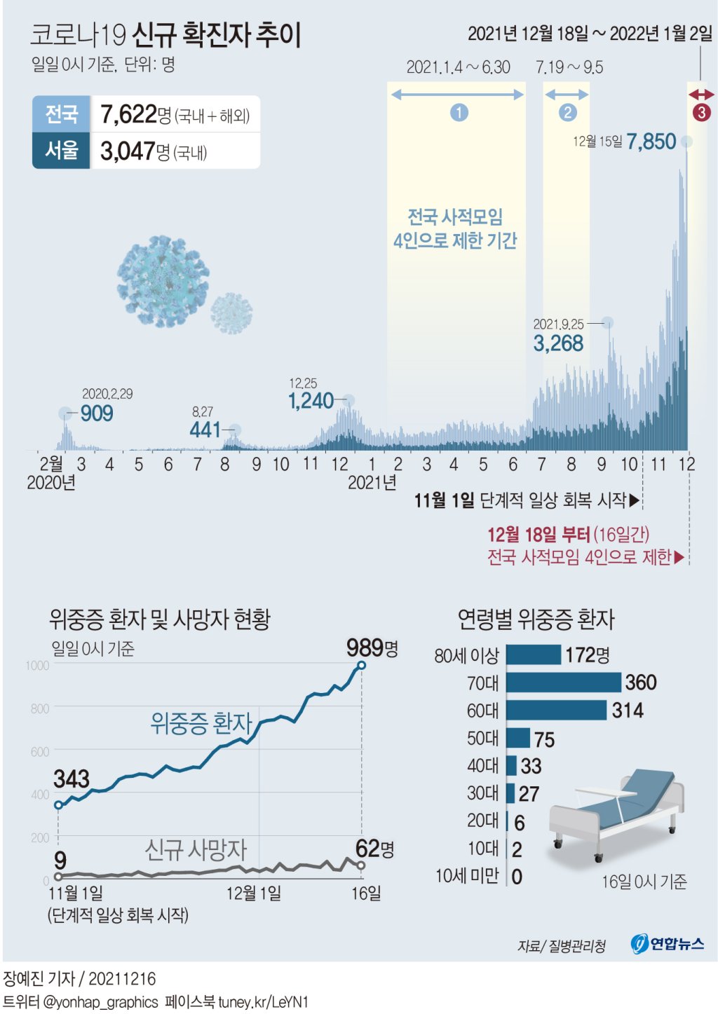 지난달 30일 이후 1000명 이상의 네 자릿수 확진자 규모가 16일 연속 이어지고 있다.