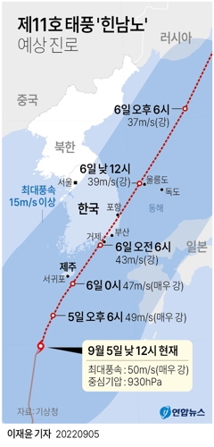 경기도 재난안전대책본부 비상 3단계로 격상…5일 오후 태풍 ‘힌남도’ 영향권