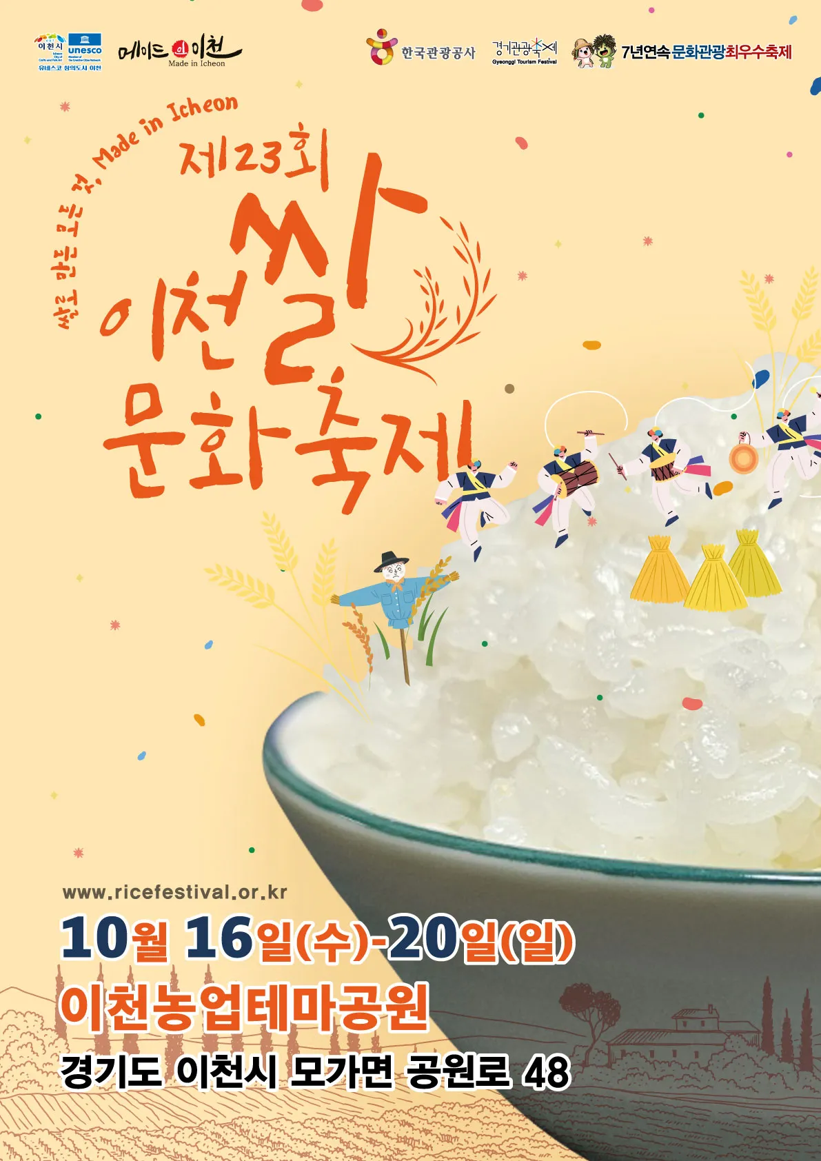 제23회 이천쌀문화축제(포스터)가 16일 농업·농촌문화 체험을 위해 조성된 이천농업테마공원에서 막 오른다.