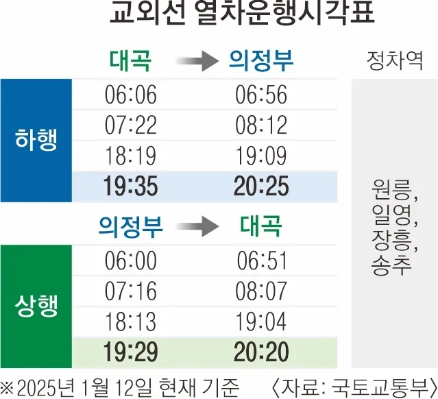 고양~의정부 간 교외선 열차가 21년 만에 다시 운행을 시작했으나 운행횟수가 하루 편도 4회에 불과하고 속도 역시 너무 느려 불만을 사고 있다.