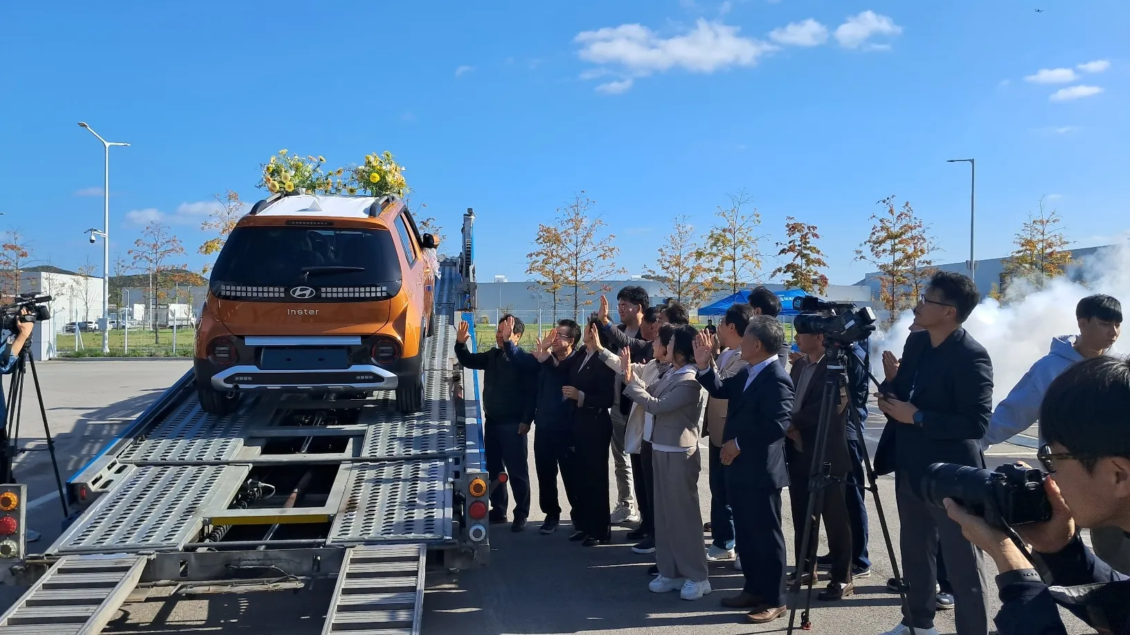 GGM는 이날 오후 광주공장 출하장에서 ’캐스퍼 전기차 수출 차량 선적식‘이 열렸다고 밝혔다. 수출 선적식에는 윤몽현 GGM 대표이사를 비롯해 강기정 광주시장, 신수정 광주시의회 의장, 박필순 광주시의회 산업건설위원장, GGM 상생협의회 의장 등 100여명이 참석했다. 이날 행사는 GGM 김대식 부사장의 수출차량 경과보고와 윤 대표이사 인사말에 이어 강 시장의 축사, 테이프커팅, 수출성공 염원 메시지 부착, 차량 상차 순으로 진행됐다.