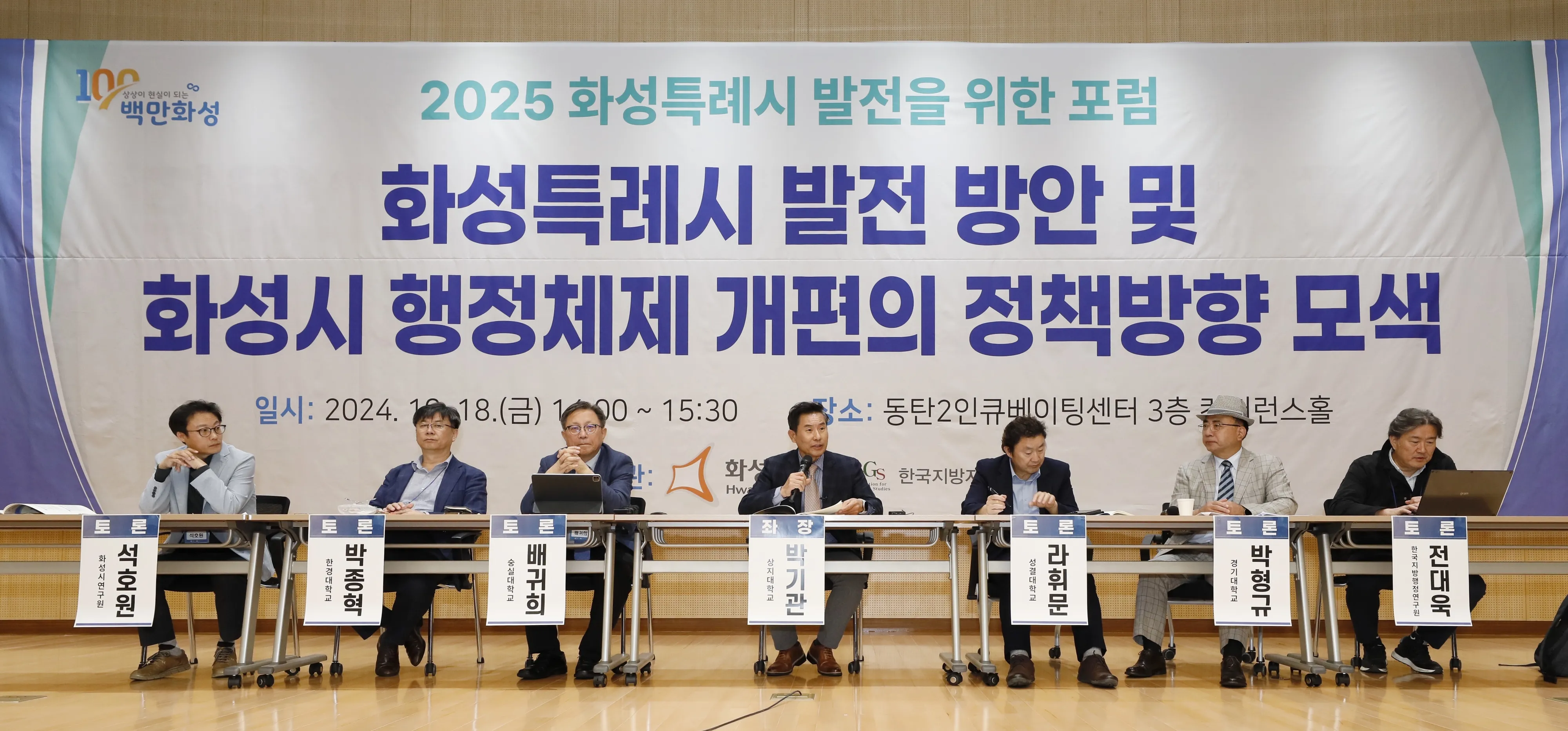 2025년 1월 1일 화성특례시 출범을 앞두고 특례시의 위상 제고와 발전 방향, 행정체계 개편 방안을 모색하기 위해 화성시가 18일 화성 동탄2인큐베이팅센터 컨퍼런스홀에서 ‘2025 화성특례시 발전을 위한 포럼’을 개최했다.