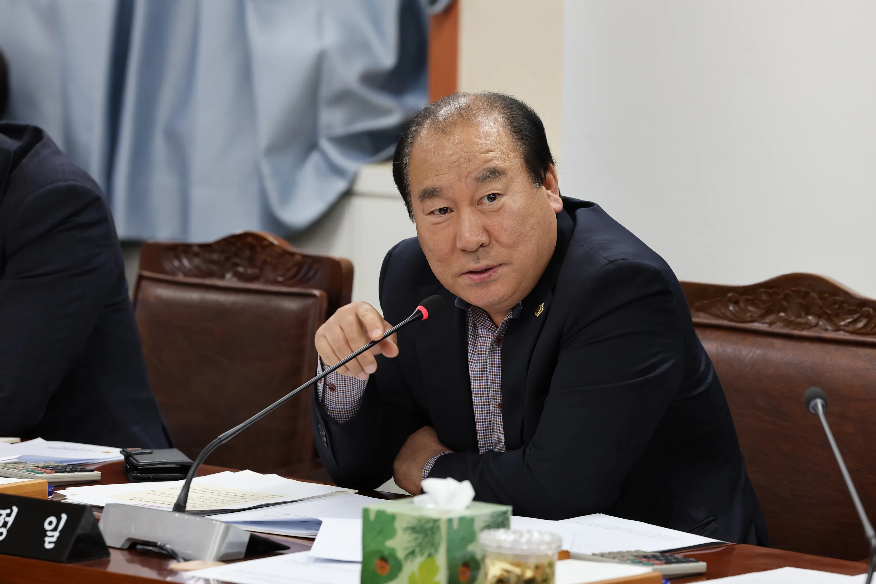 전남도의회 안전건설소방위원회 강정일(더불어민주당·광양2) 의원이 무안공항 시외버스의 예산 낭비를 지적하고 있다.
