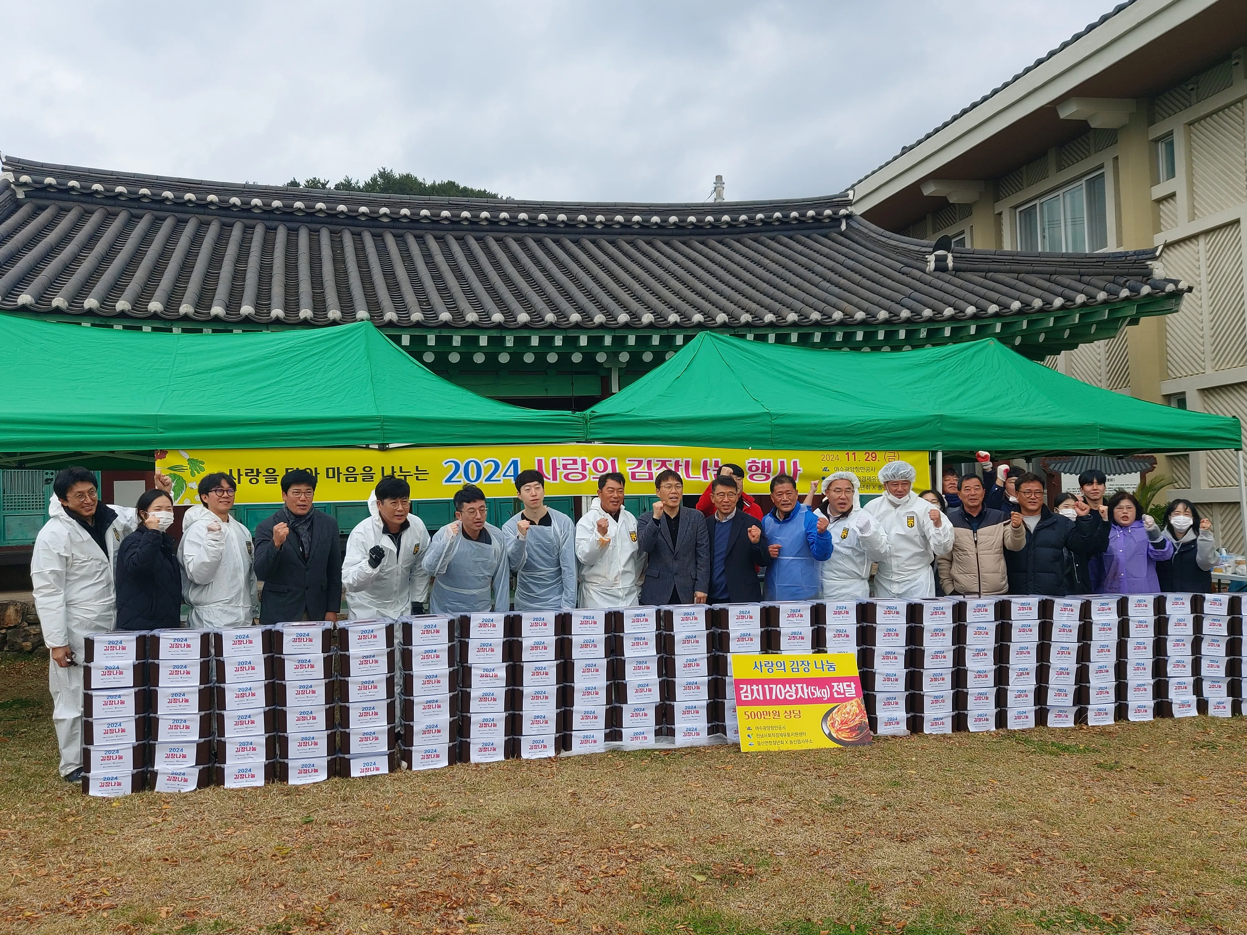 전남사회적경제유통지원센터가 29일 여수광양항만공사, 돌산연합청년회와 함께 여수 돌산읍사무소 구 동헌 뜰에서 취약계층을 위한 사랑의 김장 나눔 행사를 개최했다.