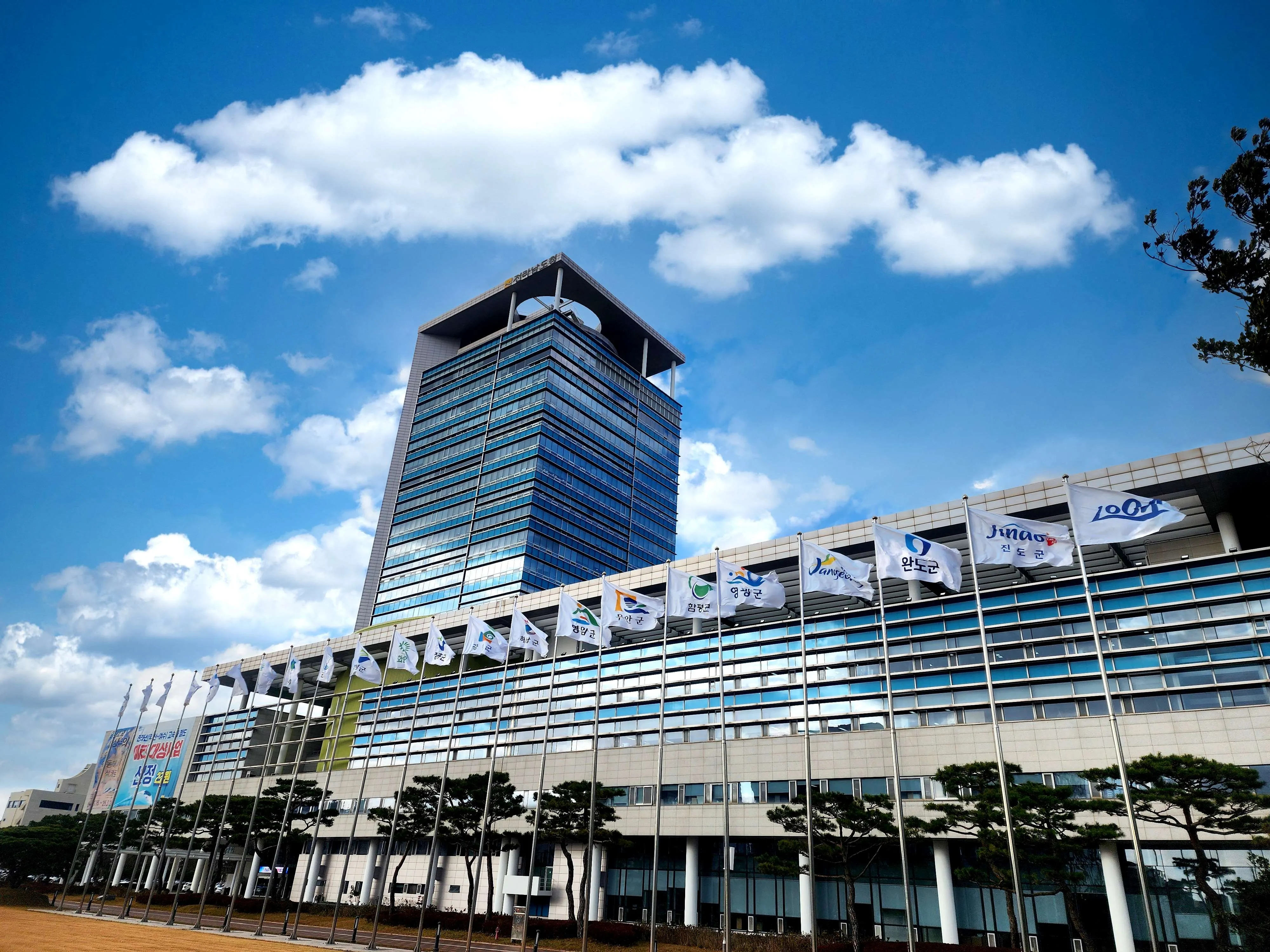 전남도청 청사 앞에 전남 22개 시·군기가 바람에 휘날리고 있다.