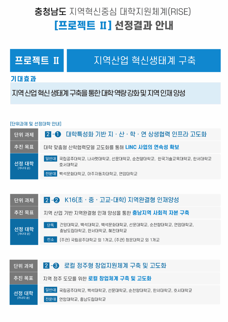 충남도는 2일 ‘2025년 제2차 충청남도 라이즈 위원회 회의’를 열고 충남 라이즈 사업을 수행할 21개 대학과 124개 추진 과제를 선정했다고 밝혔다.