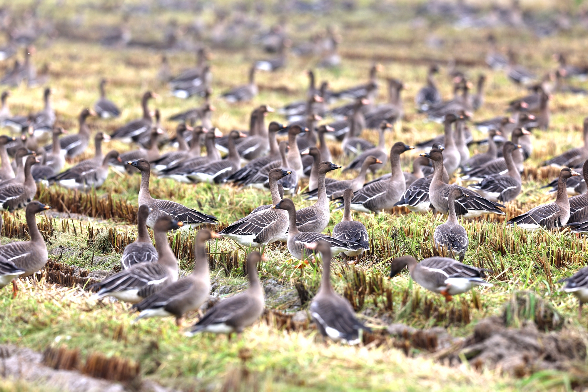기러기류는 간월호 상류 모래톱을 비롯해 수확이 끝난 농경지에서 많은 수가 집단으로 관찰된다.