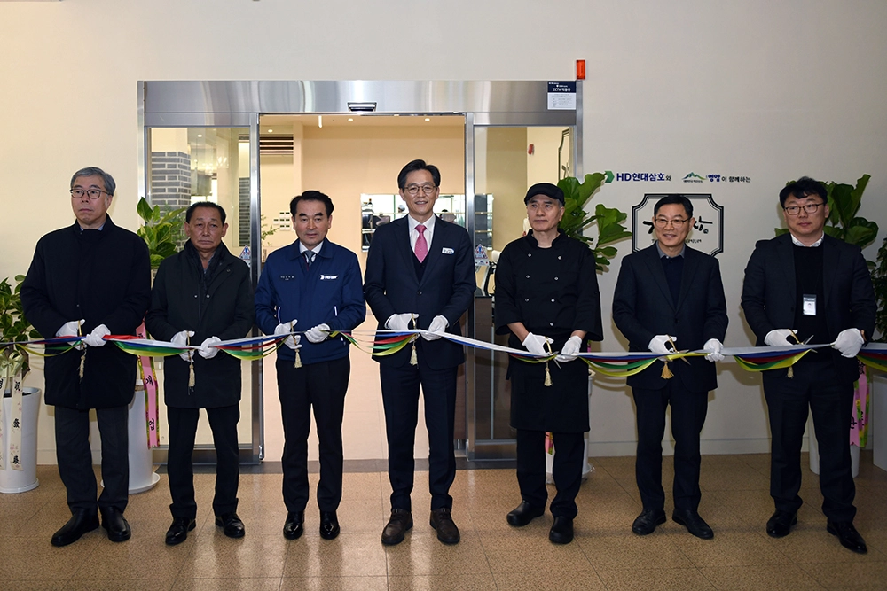 HD현대삼호는 22일 영암군 삼호읍 한마음회관에서 열린 ‘The 기찬밥상 Premium’ 개소식에서 한식뷔페 운영을 위한 사업장 임대료로 2억원을 지원했다.
