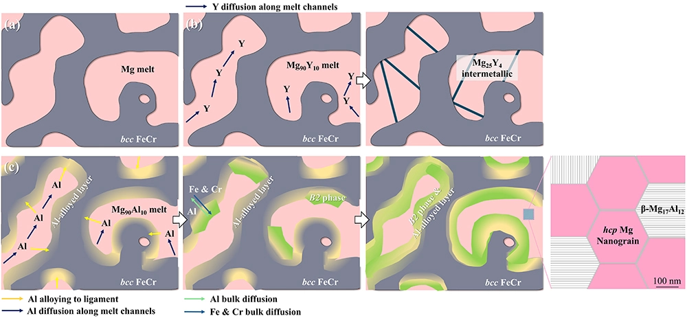 연구팀은 금속 내 일부 성분만 제거하는 ‘금속용탕 탈성분(Liquid Metal Dealloying)’ 기술을 응용해 마그네슘 복합 소재 한계를 극복하고 강도와 연성을 동시에 향상시켰다.