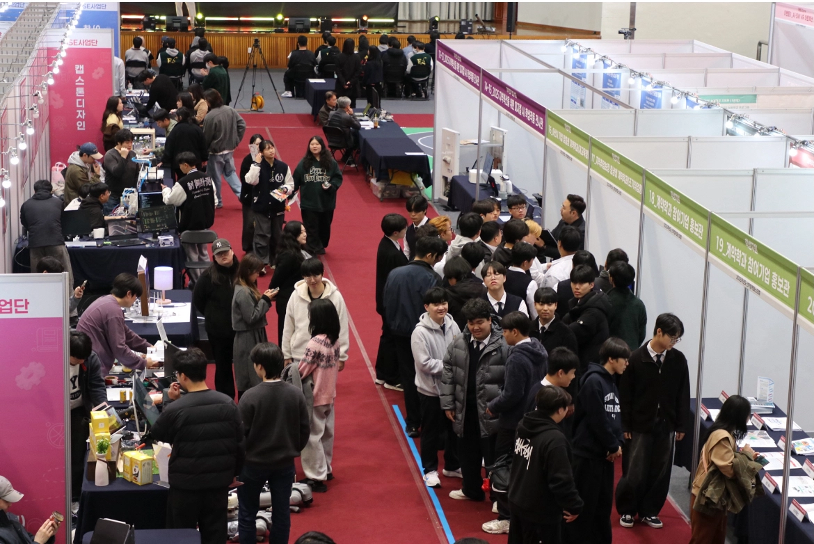 체육관에 마련된 N구역에서 학생들 캡스톤디자인 작품과 각종 프로젝트 전시, 가족기업 홍보 부스, 기술사업화 컨설팅, 자율주행 경진대회, 창업동아리 경진대회 등 산학협력 성과를 한눈에 확인했다.