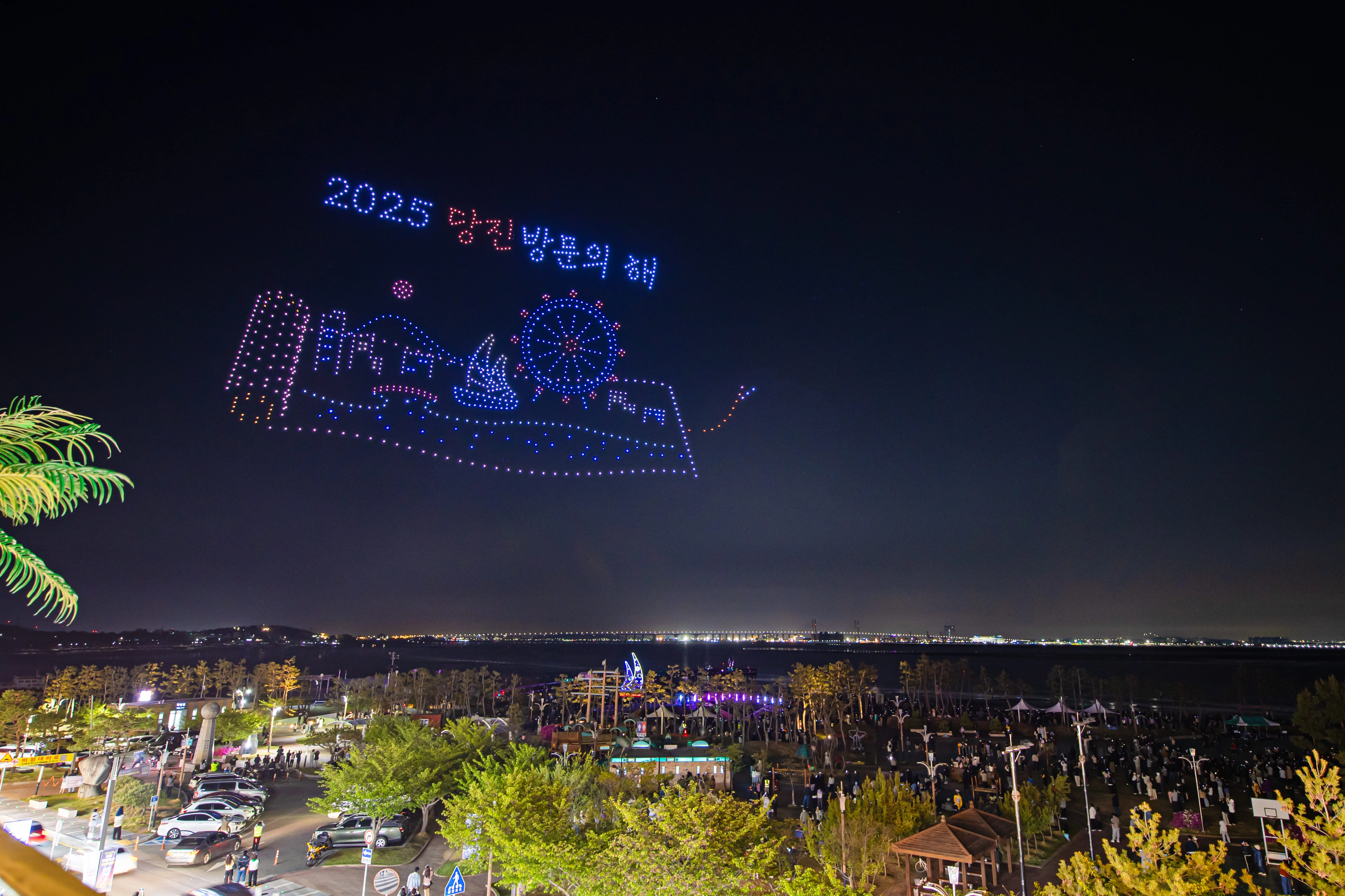 ‘2025~2026 당진 방문의 해’를 맞아 삽교호 관광지에서 선보인 드론 라이트 쇼는 야간 관광의 새로운 모델로 주목받으며 당진 관광의 대표 콘텐츠로 자리 잡았다.