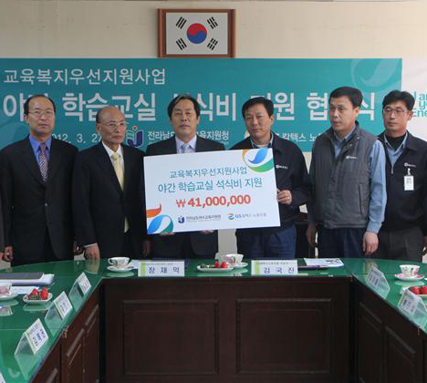 GS칼텍스 노동조합이 2006년부터 7년 연속으로 전남 여수지역 내 맞춤형 학습교실에 참가하는 중학생들에게 급식비를 지원한다.