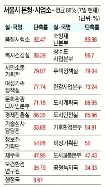 ‘민원처리를 가장 빨리하는 부서와 자치구는 어디일까.’ 서울시는 25개 자치구의 민원처리속도를 높이기 위해 8일부터 시 홈페이지(seoul.go.kr)에 자치구별 민원처리속도를 나타내는 스피드지수(단축률)를 공개한다고 7일 밝혔다.