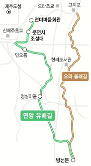 면암 유배길은 오라 올레길과 연결돼 한천을 따라 숲길과 명소들을 한눈에 볼 수 있다.