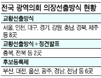 이런 폐단을 없애기 위해 도입된 제도가 후보 등록제다. 현재 부산, 울산, 광주, 대전, 경남, 전남도의회 등 6곳이 교황 선출 방식을 폐지하고 후보 등록제를 통해 의장을 선출하고 있다.