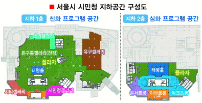 서울시는 신청사에서 시민 이야기를 경청하는 통로 역할을 할 시민청의 청사진을 14일 공개했다. 신관 지하 1~2층에 총 7842㎡로 조성되는 시민청은 시정 홍보가 아닌, 시민 의견을 듣고, 시민 활동을 지원할 수 있는 공간으로 꾸민다. 신청사 전체 공간의 40%가량을 시민공간으로 활용한다는 박원순 시장의 구상에 따른 것이다.