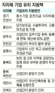 지방자치단체들이 알짜 기업을 유치하거나 관내 기업의 경영을 돕기 위해 파격적인 지원책을 앞다퉈 내놓고 있다. 지역경제 활성화를 위해서는 고용 창출로 이어지는 기업 유치만큼 중요한 게 없다는 판단에서다,