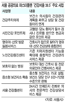 기본계획에 따르면 보건소마다 6~7명의 의사가 시민에게 맞는 건강관리계획을 짜주고 지역사회 건강동아리와 연결해주는 건강주치의제가 내년부터 시행된다. 지속적인 치료를 해야 하는 고혈압·당뇨 환자가 병·의원에서 필수적인 검사·진료·교육을 받으면 보건소에서 포인트를 주는 ‘시민건강 포인트제’도 도입된다. 포인트는 등록의료기관에서 검사비용, 예방접종비용 등에 현금처럼 사용할 수 있다. 연간 최대 2만 포인트(2만원 상당)를 받을 수 있다.
