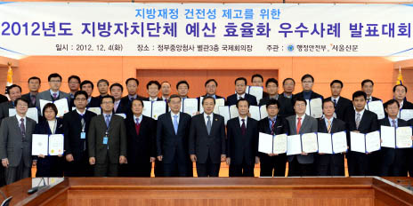 맹형규 행안부 장관은 “이번 사례 발표 대회가 각 지자체의 예산 효율화 경험을 전국적으로 공유해 지방 재정의 건전성과 효율성을 높이는 계기가 되길 기대한다.”고 밝혔다.