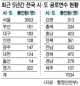 이런 가운데 최근 5년간 전국 16개 시·도의 공로연수 인원은 모두 7034명으로 나타났다. 연도별로는 2007년 1890명, 2008년 1462명, 2009년 828명, 2010년 1862명, 2011년 992명 등이다. 연수 기간 동안 이들에게 지급된 보수는 대략 4200억원 정도로 알려졌다.