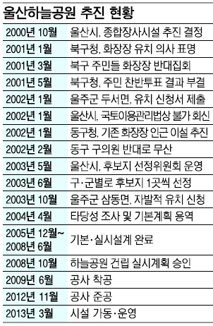 이어 2002년 1월에는 울주군 두서면이 유치 신청서를 제출했지만, ‘국토이용관리법상’ 설치 기준에 맞지 않아 무산됐다. 또 같은 시기에 동구가 기존 화장장 인근에 종합장사시설을 옮기는 방안을 추진했지만, 이마저도 구의원들의 반대로 백지화됐다.