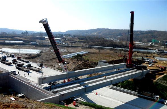 경기 여주군이 지역 개발에 절대 필요하다며 2016년 완공 예정인 제2영동고속도로의 동여주IC 개설을 강력히 요구하고 있다. 사진은 3공구 계신2교 공사 현장.<br>여주군 제공