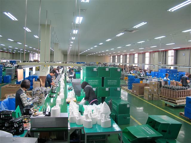 휴롬은 숱한 실패에도 끈질긴 연구 끝에 세계 최초로 개발한 저속착즙 방식의 원액기로 세계 주스기 시장을 석권하고 있다. 경남 김해시 주촌면 공장에서 종업원들이 분주하게 원액기를 조립하고 있다. 휴롬 제공
