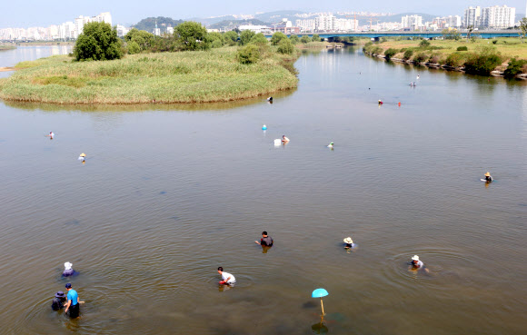 지방자치 >자치뉴스 태화강 40여년만에 재첩잡이 입력 2013 08 20 00:00 수정 2013 08 20 00:00 기사 소리로 듣기 다시듣기 태화강 40여년만에 재첩잡이19일 울산 태화강 하구에서 20여명의 시민들이 재첩을 채취하고 있다. 태화강 재첩 잡이는 1970년대 성행했다가 오염으로 사라졌지만 최근 생태환경이 되살아나면서 부활하고 있다.울산 연합뉴스 19일 울산 태화강 하구에서 20여명의 시민들이 재첩을 채취하고 있다. 태화강 재첩 잡이는 1970년대 성행했다가 오염으로 사라졌지만 최근 생태환경이 되살아나면서 부활하고 있다. 울산 연합뉴스 ⓒ 트윅, 무단 전재 및 재배포 금지
