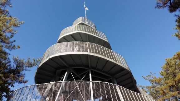 안양공공예술프로젝트(APAP) 주 무대인 안양예술공원은 세계 유명 작가의 예술작품이 즐비하다. 사진은 국내 유일 공공예술 트리엔날레인 APAP 제 1회 작품인‘안양 전망대’. 건축가 그룹 ‘MVRDV’의 작품으로 등고선을 입체화한 전망대.