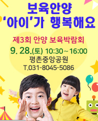경기 안양시는 오는 28일 ‘제3회 보육박람회’를 평촌중앙공원에서 개최한다고 13일 밝혔다. 시가 주최하고 어린이집연합회가 주관하는 이번 행사는 콘서트, 사진전 등 다양한 보육관련 행사가 열린다.