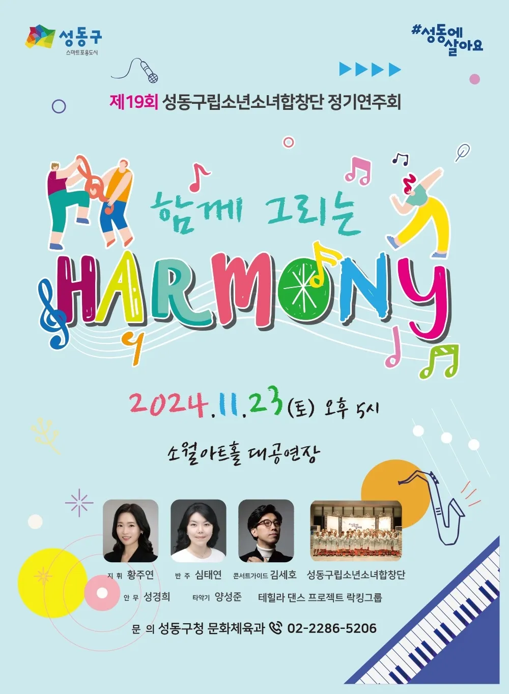 성동구립소년소녀합창단은 성동구민의 문화 증진과 지역 문화 예술 발전을 위해 2001년에 창단된 성동구의 대표문화사절단이다. 이번에 열리는 정기 연주회에서는 황주연 지휘자의 지휘와 심태연 반주자의 피아노 연주로 무대가 꾸며질 예정이다.