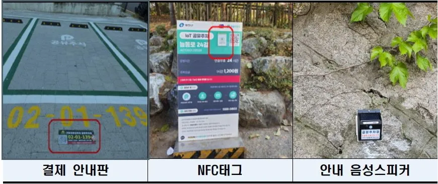 우선 결제 큐알(QR)코드가 부착된 바닥 안내판·현수막과 근거리무선통신(NFC) 결제 태그를 설치해 간편결제 기능을 도입했다. 또 공유주차장 안내 스피커를 설치해 주차장 이용 절차를 간소화하고 직관적인 안내를 제공해 공유주차장 서비스 활성화를 도모한다.