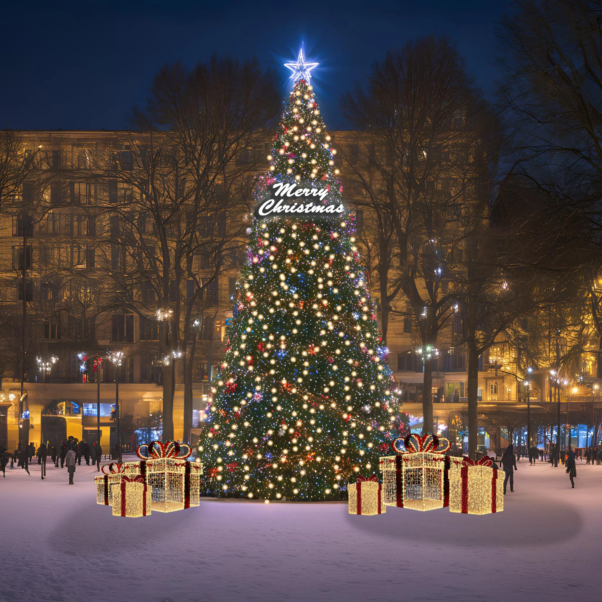 서울시 로맨틱 한강 크리스마스 마켓의 대형 트리 연출사진.