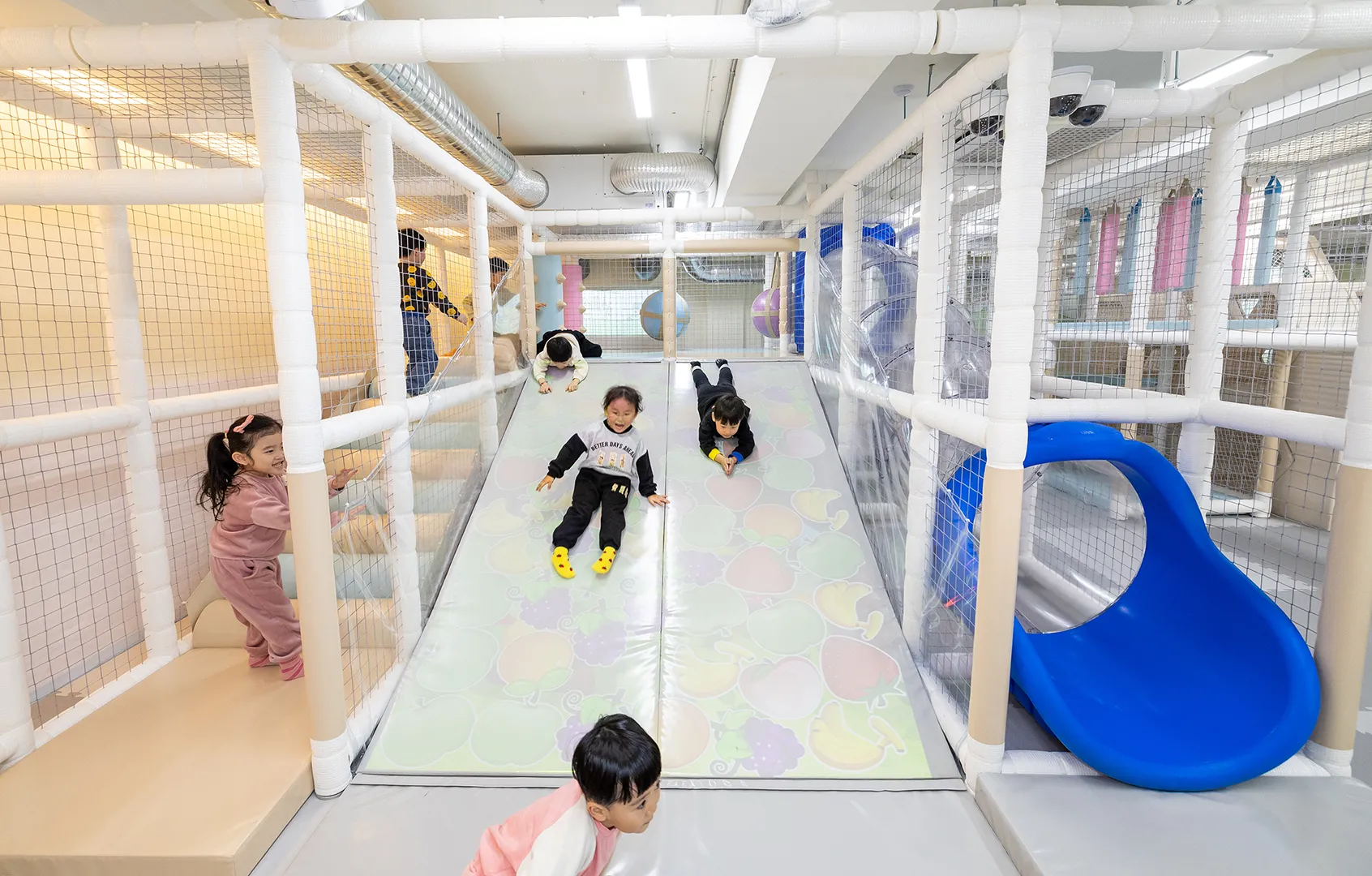 내부는 챌린지존과 플레이존으로 구성됐다. 챌린지존에는 트램펄린, 장애물 통과하기, 구름 다리 등 역동적인 놀이기구를 설치해 아이들이 마음껏 뛰어놀 수 있도록 했다. 플레이존에선 캠핑·쇼핑 체험 등 역할놀이가 가능하다.
