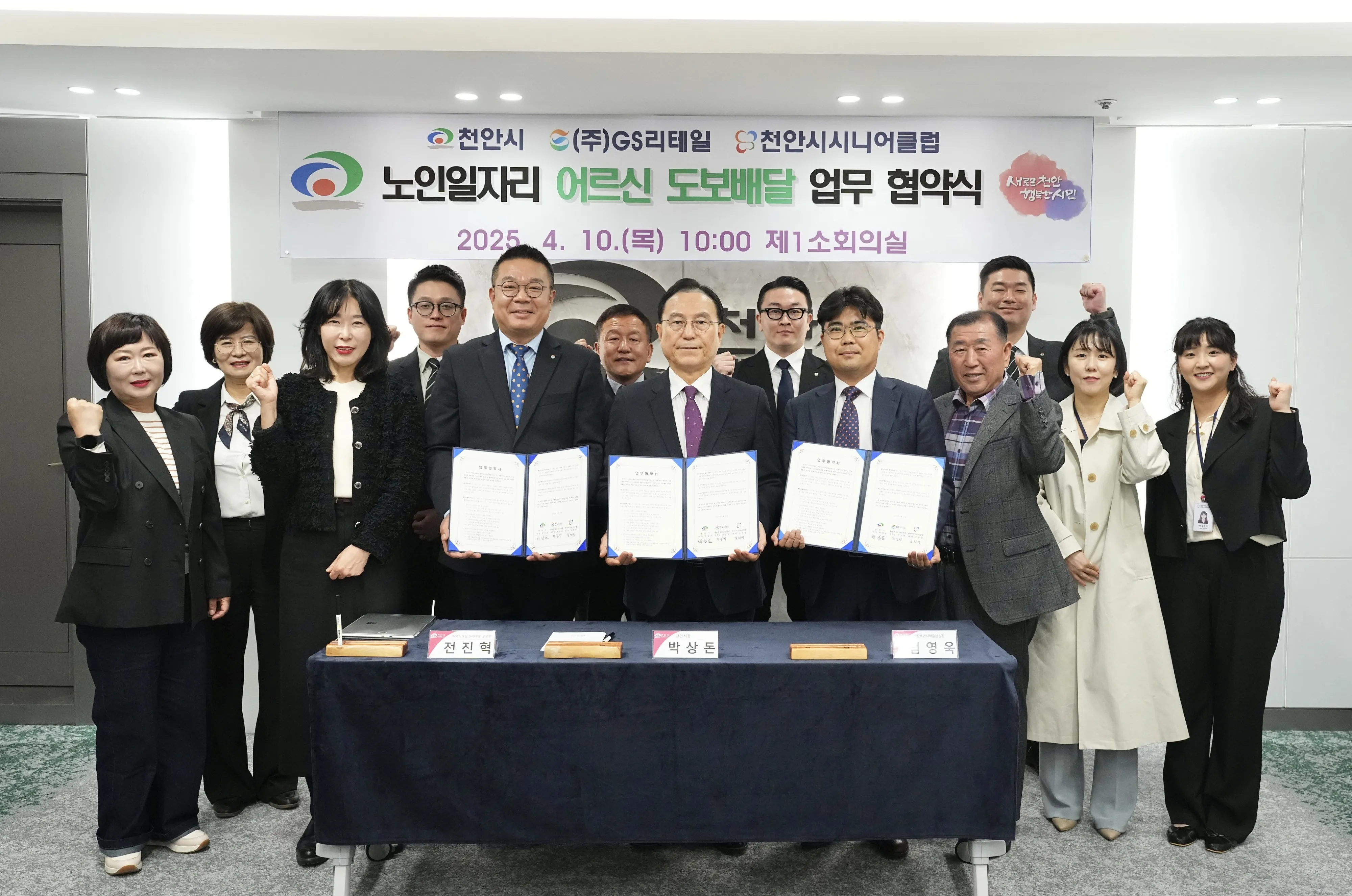 충남 천안시는 ㈜GS리테일, 천안시시니어클럽과 10일 ‘어르신 도보배달 시범사업’ 업무협약을 체결했다.