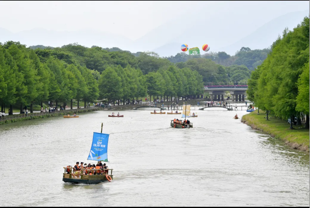 2024년 5월 열린 담양 대나무축제장에서 관광객들이 대나무로 만든 카누를 타며 즐기고 있다. (담양군 제공)