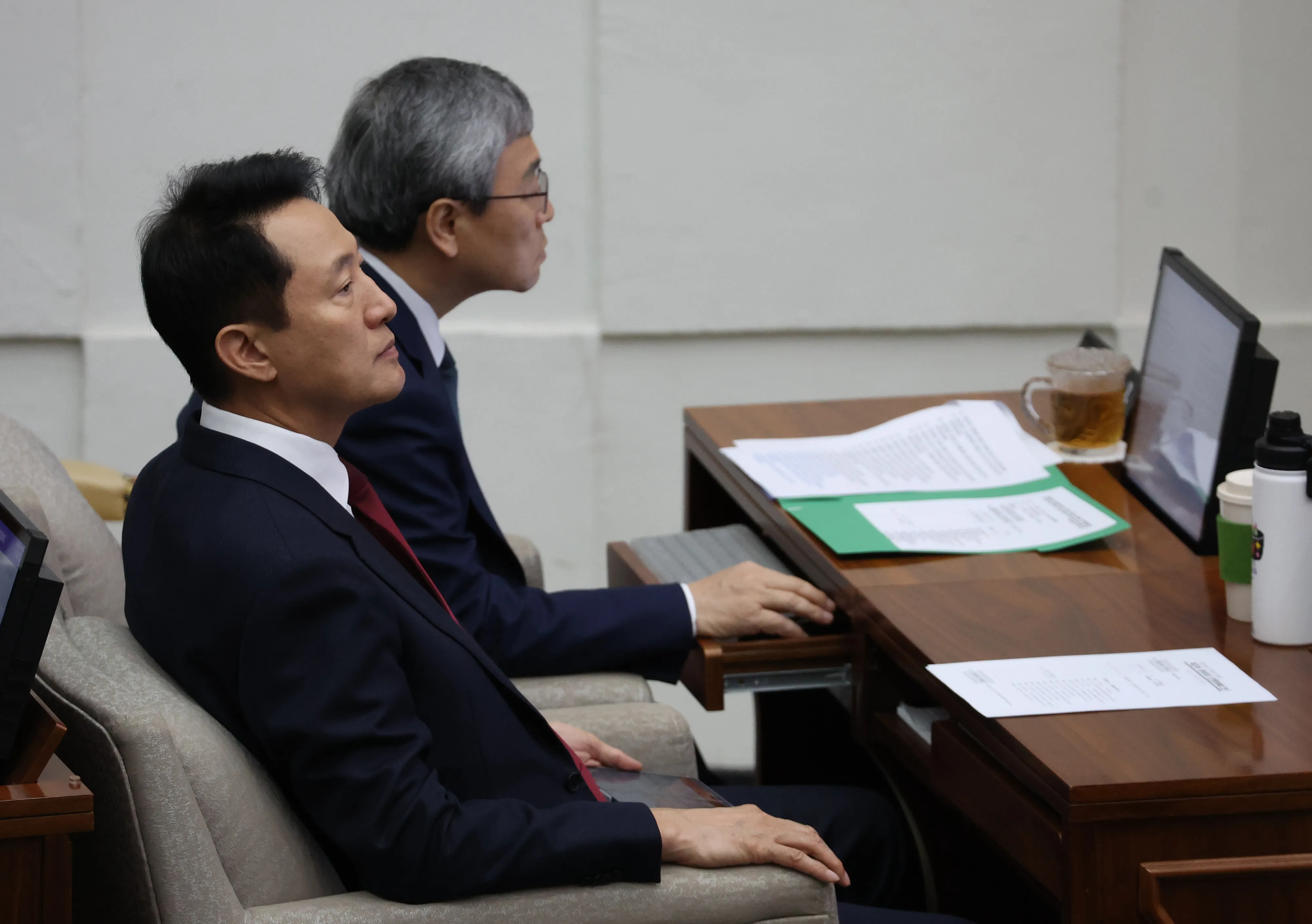 오세훈 서울시장이 지난달 30일 서울 중구 서울시의회에서 열린 제330회 임시회 본회의에 참석해 있다.