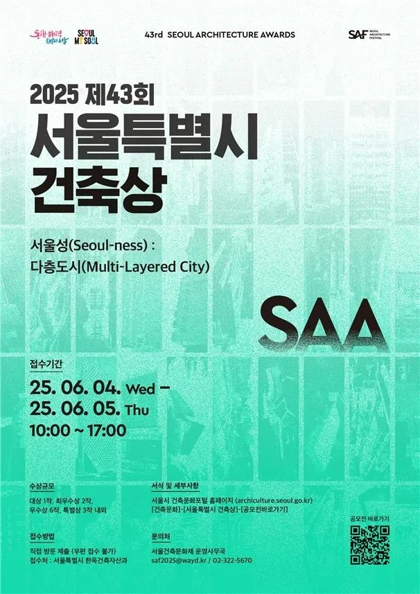 우수 건축물을 장려하고자 건축문화와 기술 발전에 기여한 건축 관계자를 매년 시상하는 행사다. 올해는 서울건축문화제의 주제인 ‘서울성: 다층도시’에 맞춰 서울의 고유성, 정체성, 지역성을 미래 지향적인 관점에서 새롭게 조망할 수 있는 건축물을 발굴한다.