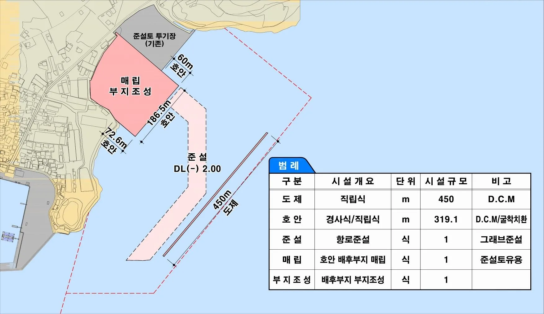 이번 정비사업은 김 산업 등 어업 기반의 지속 가능한 어촌 성장발판 마련을 위해 총공사비 370억 원을 투자해 향후 5년에 걸쳐 △항로 및 수심 확보를 위한 준설 △호안시설 축조 △부족한 배후부지 확보 등 기반 시설을 대폭 확충한다.