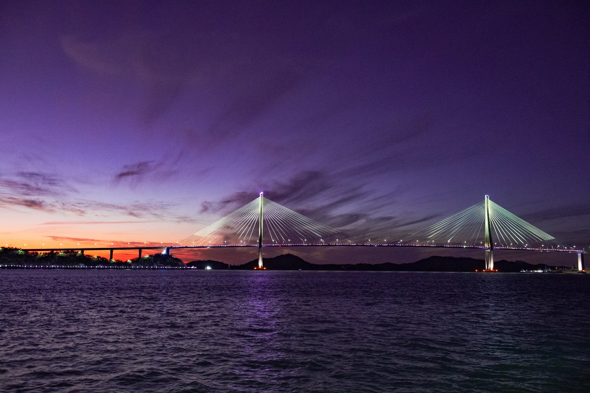 목포를 대표하는 야간경관 명소 목포대교가 다채로운 빛으로 새단장을 해서 관광객을 맞이한다.