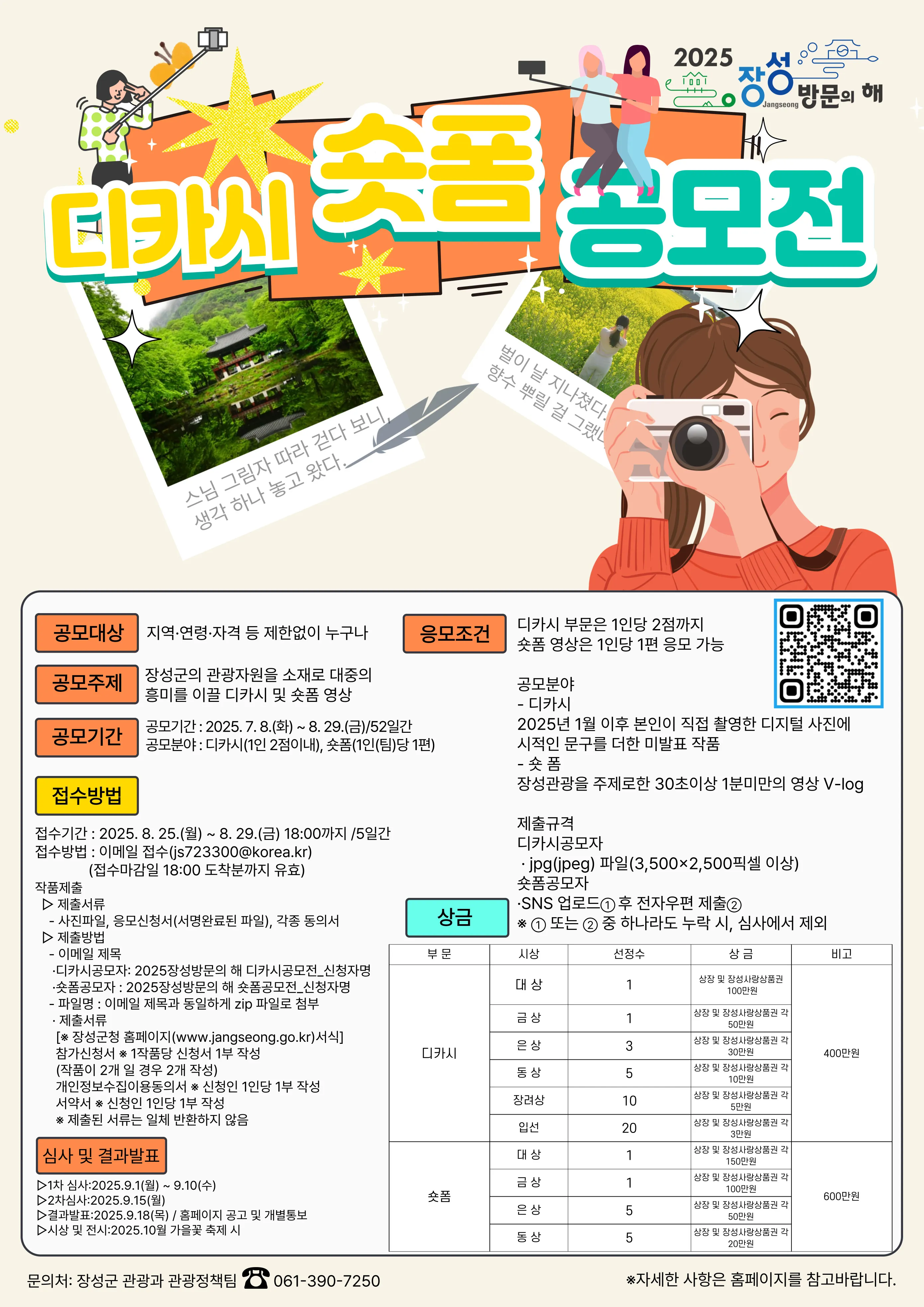 장성군, ‘2025 장성 방문의 해’ 기념 ‘디카시·숏폼’ 공모전