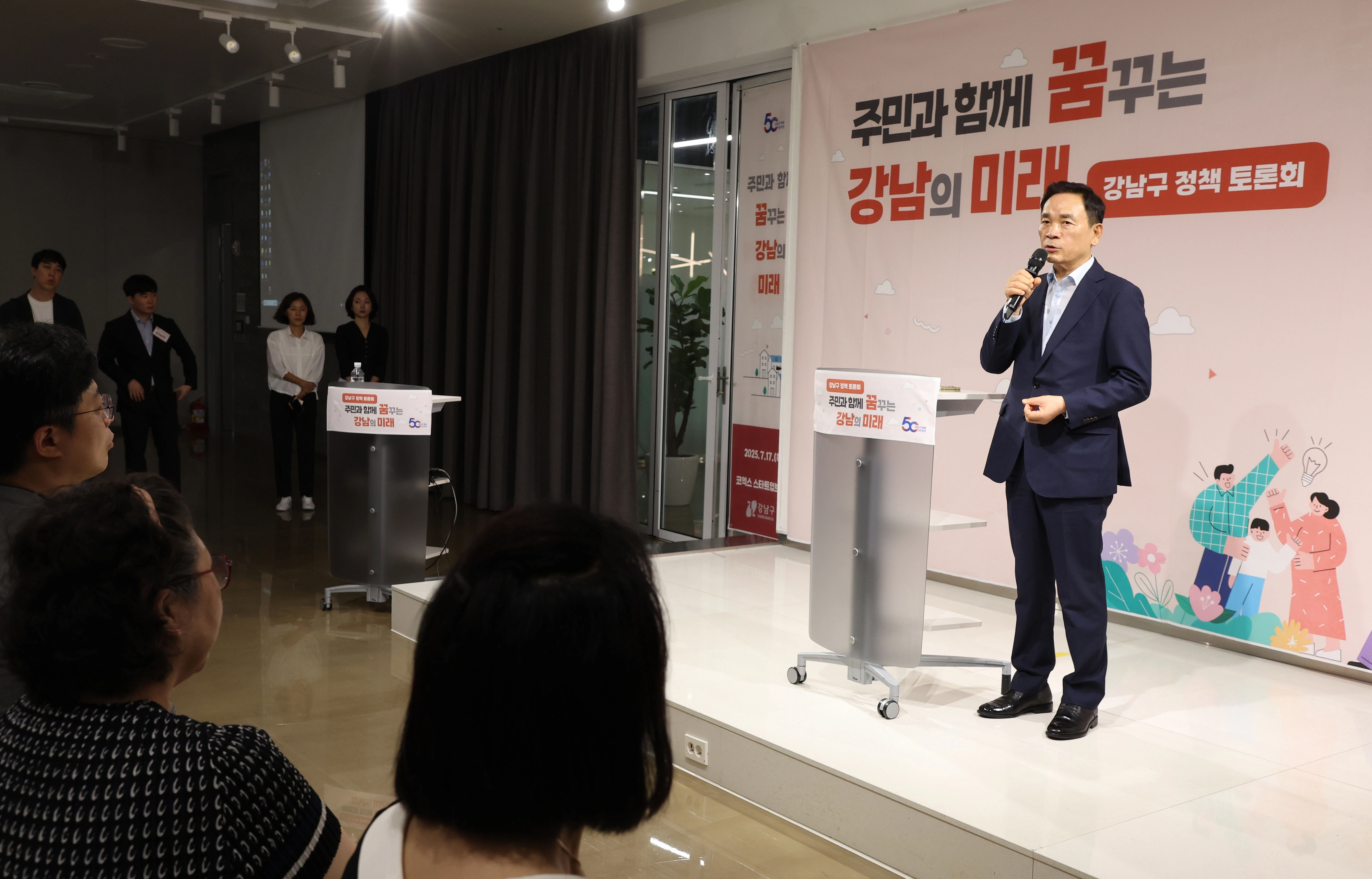 지난 17일 오후 2시 서울 강남구 코엑스 스타트업브랜치에서 열린 ‘주민과 함께 꿈꾸는 강남의 미래’ 정책토론회가 주민들의 다양한 아이디어로 뜨겁게 달아올랐다. 이날 행사는 민선 8기 동안 강남구 정책을 평가하고, 주민들이 느낀 정책 성과와 아이디어 듣기 위해 마련됐다.