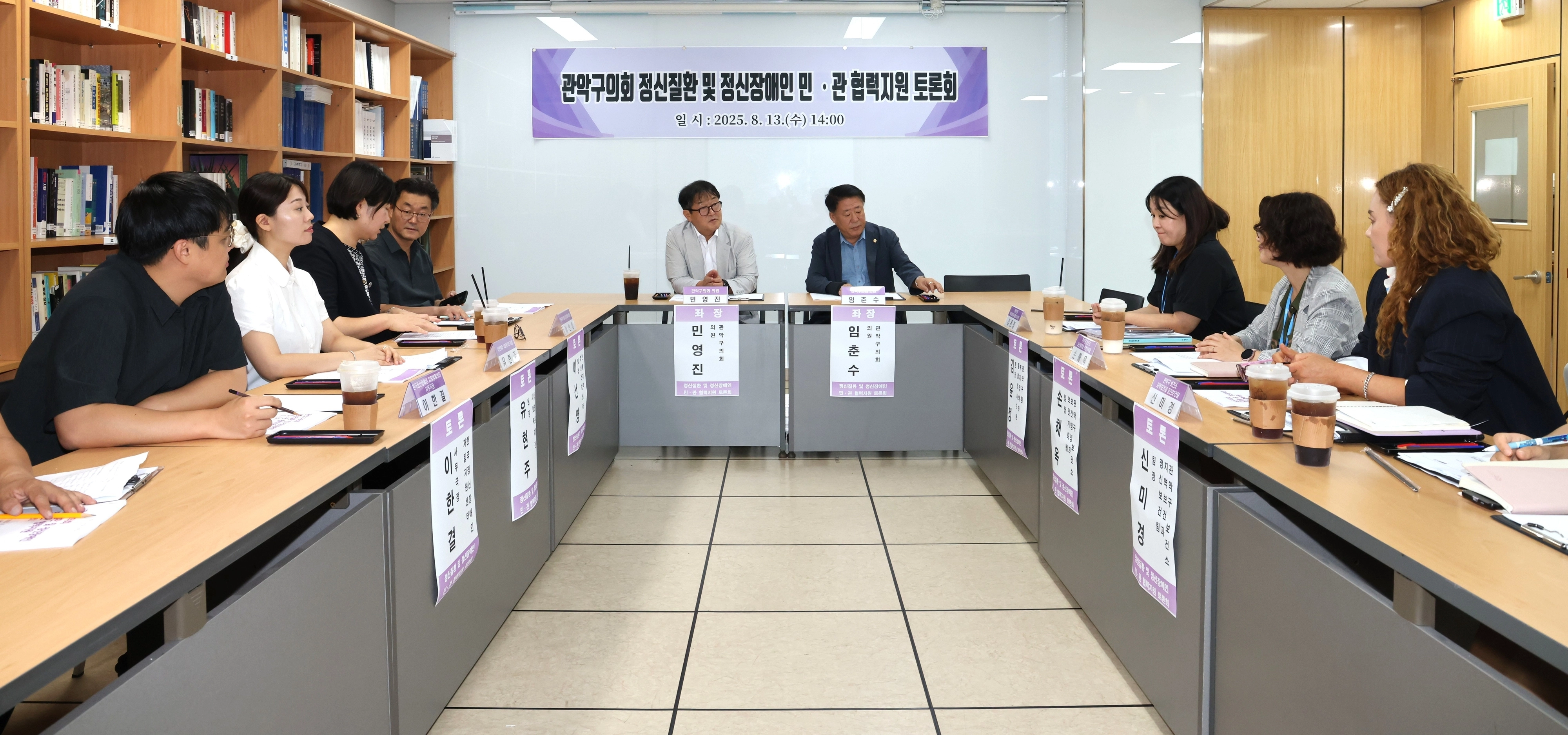관악구의회 보건복지위원회 임춘수 의원과 행정재경위원회 민영진 의원이 지난 13일 오후 2시 관악구의회 자료실에서 ‘정신질환 및 정신장애인 민·관협력지원 토론회’를 공동 개최했다.