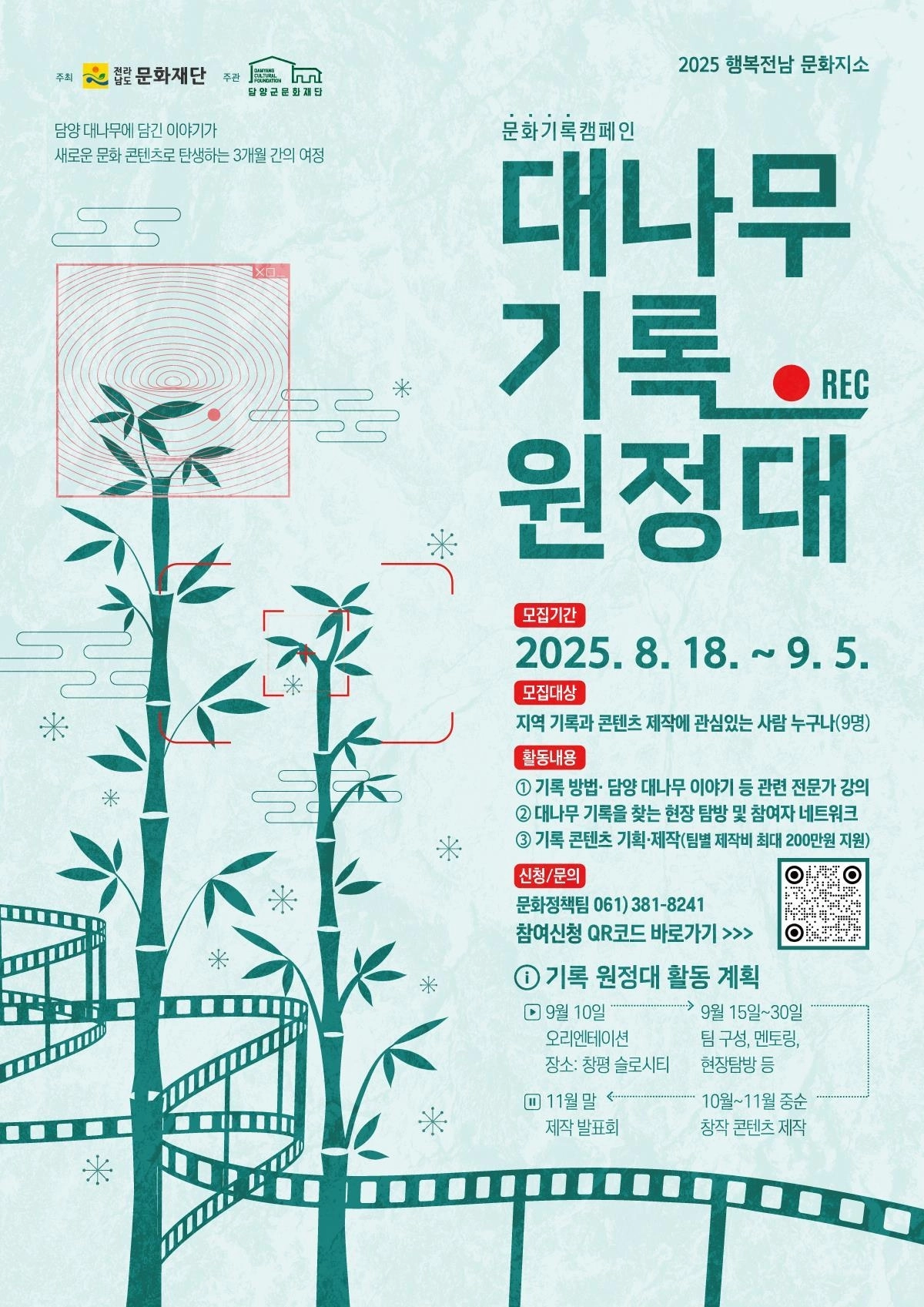 담양군 문화재단이 문화 기록 캠페인 ‘대나무 기록 원정대’를 본격적으로 추진하기 위해 참여자를 모집한다.