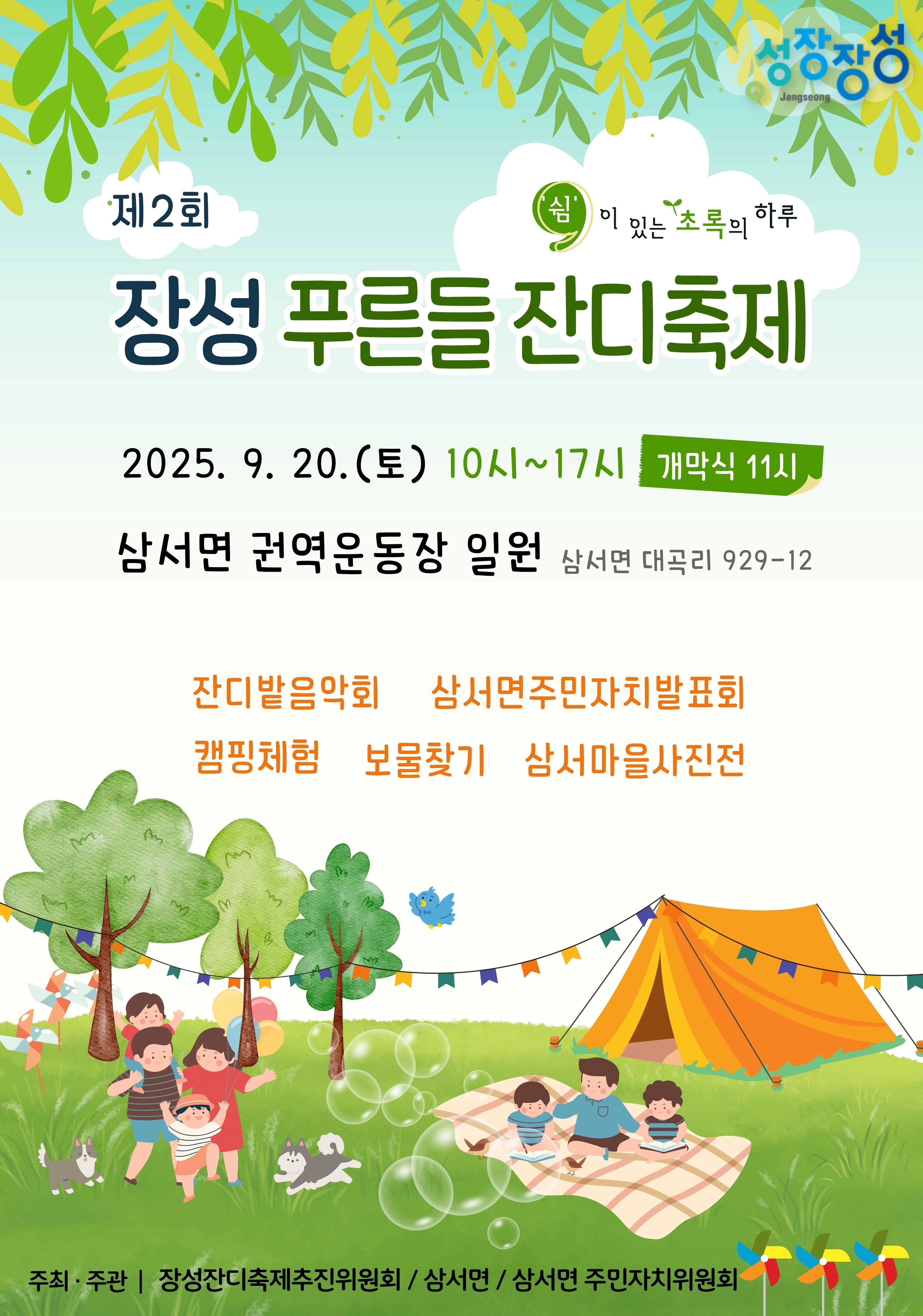 장성군은 전국 잔디 생산량의 약 40%를 차지하고 있는 장성군 삼서면에서 오는 20일 ‘제2회 장성 푸른들 잔디축제’를 연다고 18일 밝혔다.