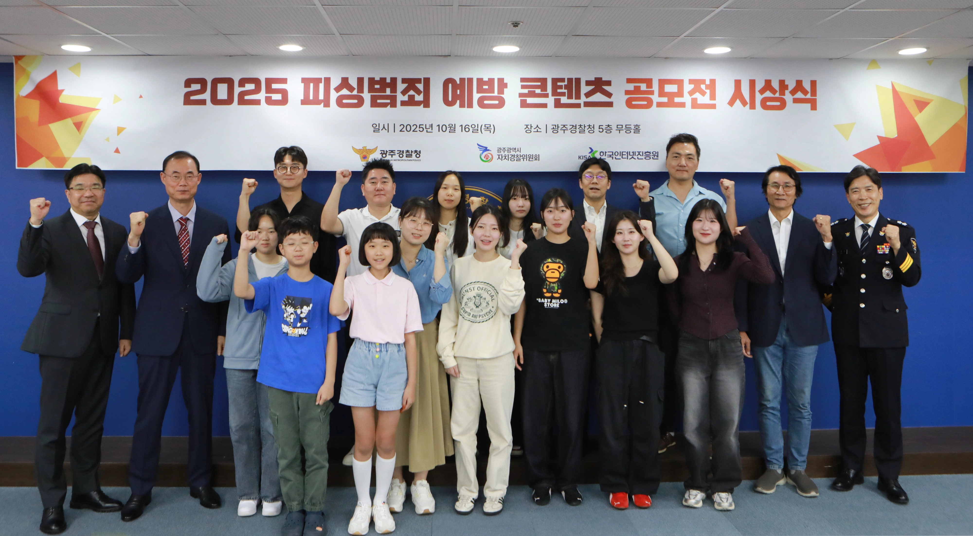 광주경찰청은 자치경찰위원회·한국 인터넷 진흥원과 공동 주관 한 ‘2025년 피싱범죄 예방 콘텐츠 공모전 시상식’을 16일 광주경찰청 무등홀에서 개최했다고 17일 밝혔다.