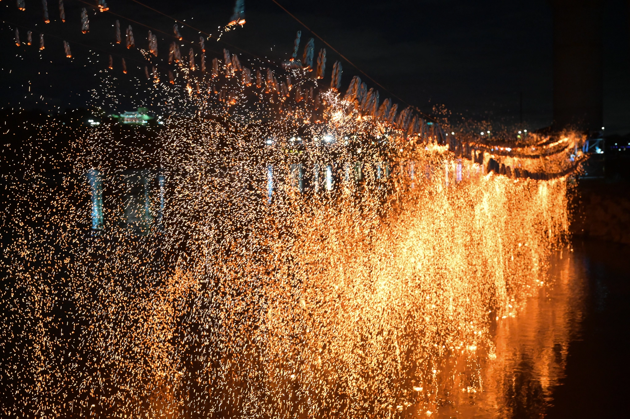여주오곡나루축제에서 가장 인기를 끌고 있는 전통 불꽃행사 ‘낙화놀이’ 모습.