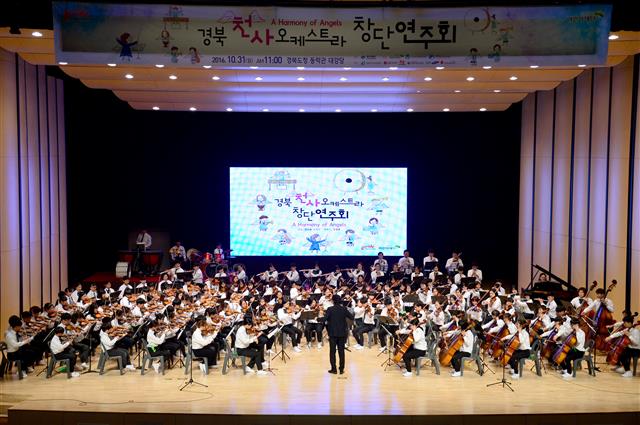 도내 12개 시·군의 아동양육시설(11곳)과 지역아동센터(20곳)를 이용하는 저소득가정의 아동 148명으로 구성된 ‘경북 천사 오케스트라단’(지휘자 최광훈)이 창단 연주회를 가졌다.